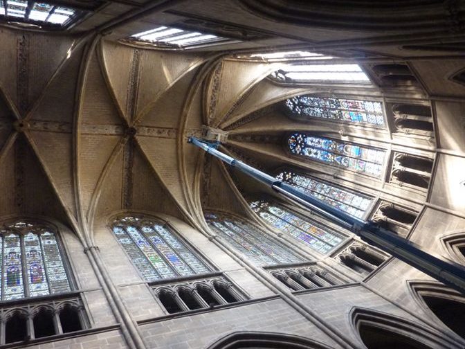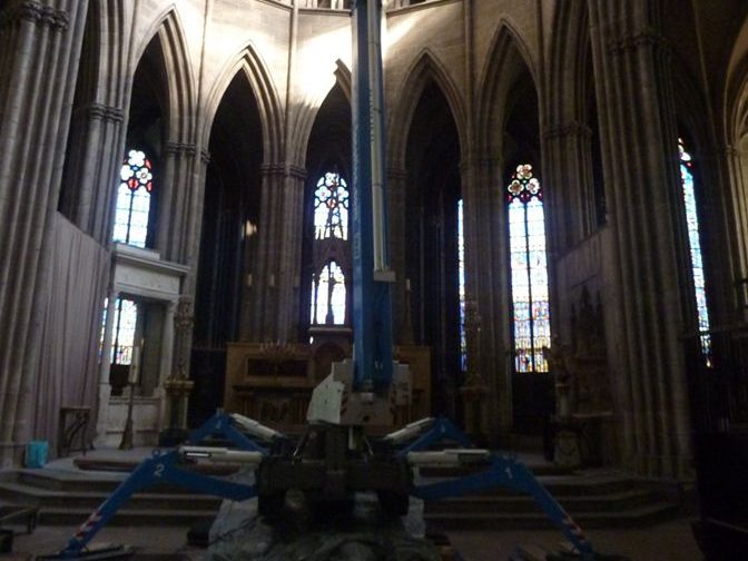 On comprend ainsi que le degré de précision d’une étude hormis la compétence de celui qui la mène est lié au moyen d’accès utilisé. Plus nous approchons de près les vitraux, plus l’observation sera fine. De fait, les approches par nacelle, échafaudage, ou la manipulation de panneaux déjà déposés, permettront d’élaborer un constat d’état plus fiable que celui établi par un simple examen du sol ou à la jumelle.